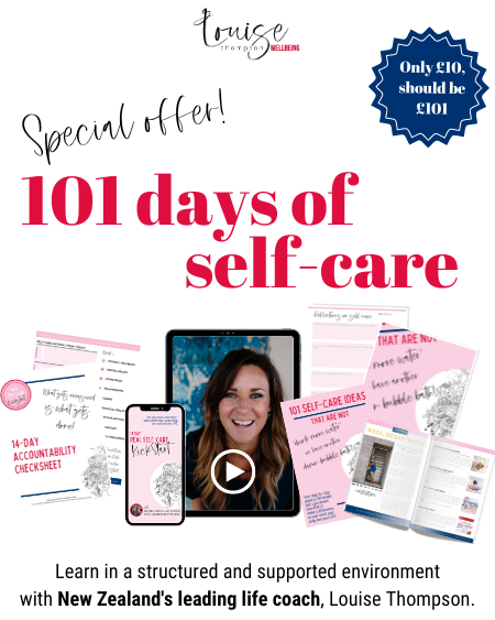 I’m Louise, mastercoach, best-selling author and all-round wellbeing junkie. I’m super excited you are about to action a snappy, 14-Day Self-Care reset: I have SO many practical, actionable ideas to get you started (101 to be exact!).