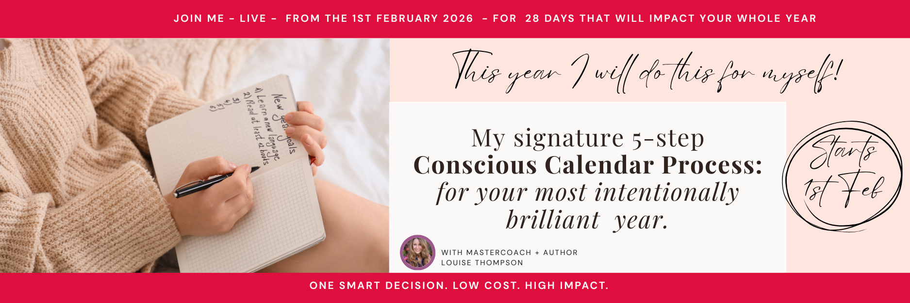 If you love the Academy, stay! If you are here just for February's Conscious Calendar that’s fine – you can cancel with a few clicks or email support@louisethompson.com before the end of February and we will take care of it for you no problem!
